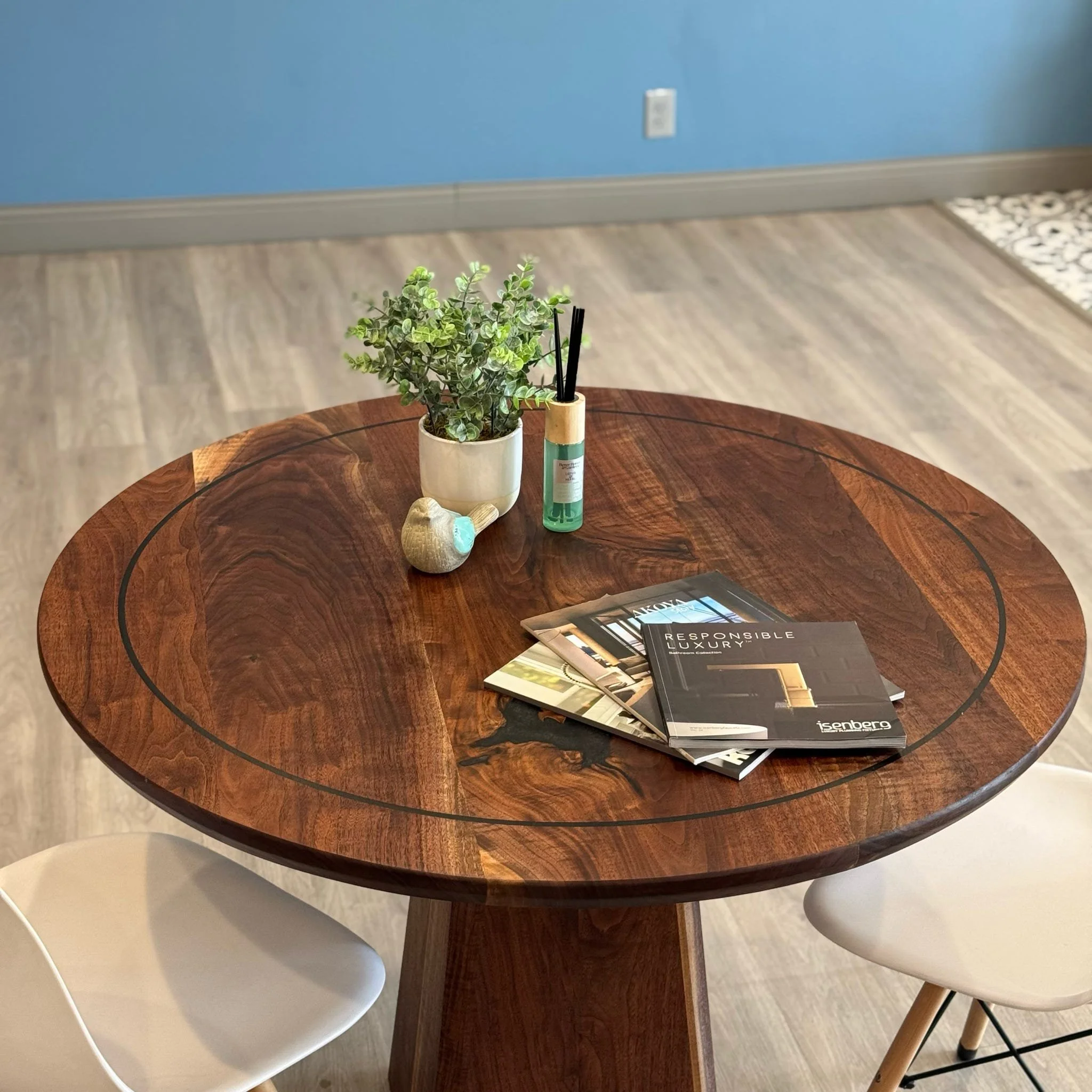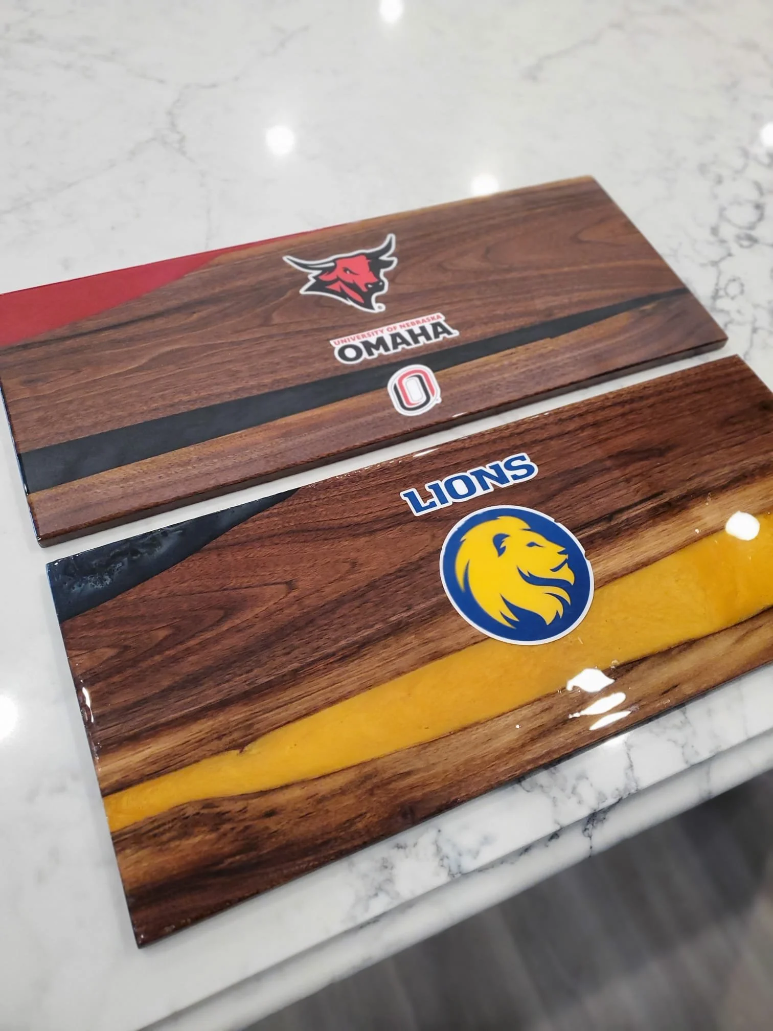 We do custom size dining and conference tables. Featuring various local wood species, quartz and granite, and custom resin colors. Square legs, hairpin legs, tee shaped legs… We can do it all!
